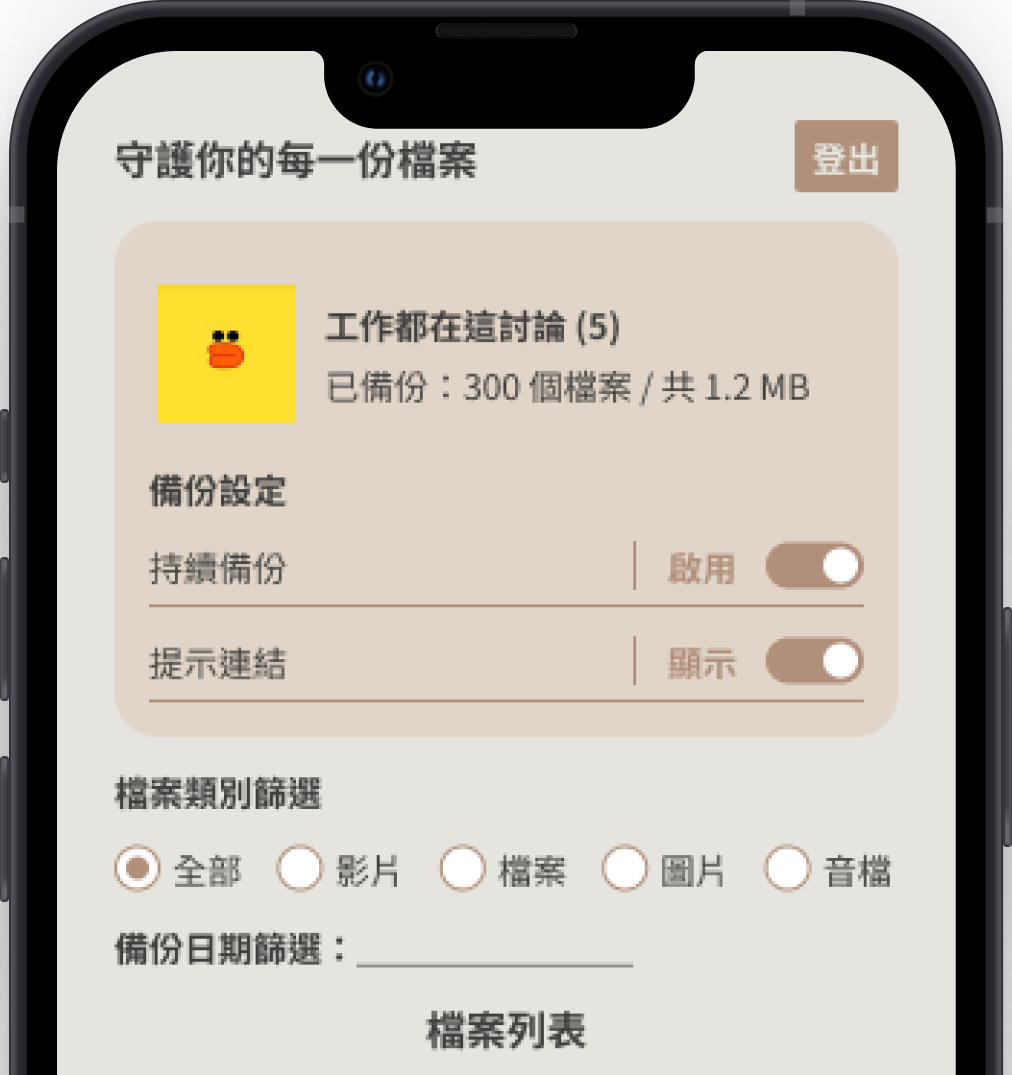 我們想讓使用者可以很輕易、不需要特意的操作備份檔案,所以在備份任務執行時,群組內的所有檔案及照片都會自動備份。您可以到檔案管理後台,篩選或群組您需要的檔案。